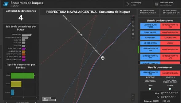 Según explicó Proni Maiolini, una situación recurrente es la de buques que “pinchan” la línea de la ZEEA por márgenes muy reducidos. “Detectamos ingresos momentáneos de entre 50 y 100 metros. A veces nos ven y salen, o los encontramos maniobrando para retomar navegación, pero igualmente están en infracción”, advirtió.