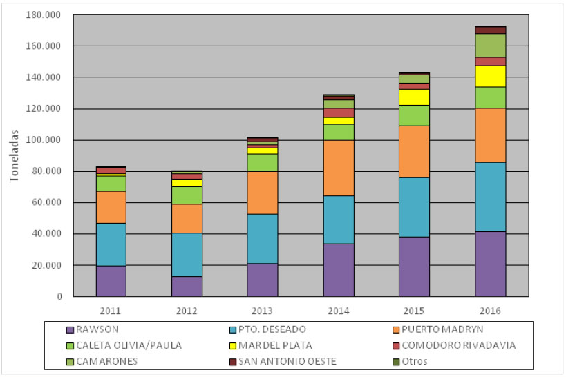 De las poco más de las 80 mil toneladas de 2011 a las casi 180 mil de 2016. Una mirada en perspectiva permite dimensionar la evolución que ha tenido la pesca de langostino en los últimos años.