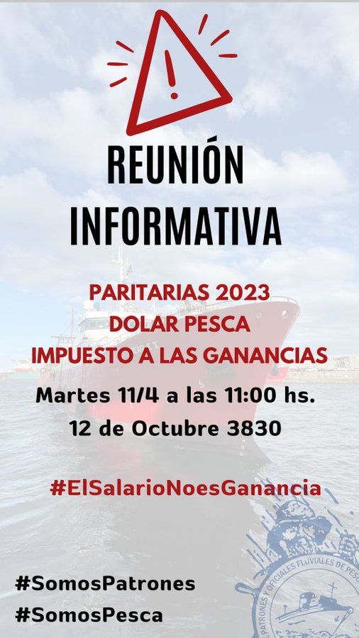 Al igual que SICONARA, los afiliados al Centro de Patrones están convocados también a las 11 para una reunión informativa sobre paritarias 2023, dólar pesca e impuesto a las ganancias, en la calle 12 de octubre 3830 de Mar del Plata. Todo hace presuponer que cualquier decisión llevará a la continuidad de la parálisis y demoras que hay en la flota, que según parecer de los entrevistados, por esta semana, no habrá salidas en los puertos del litoral marítimo de Argentina con destino pesca, al menos.