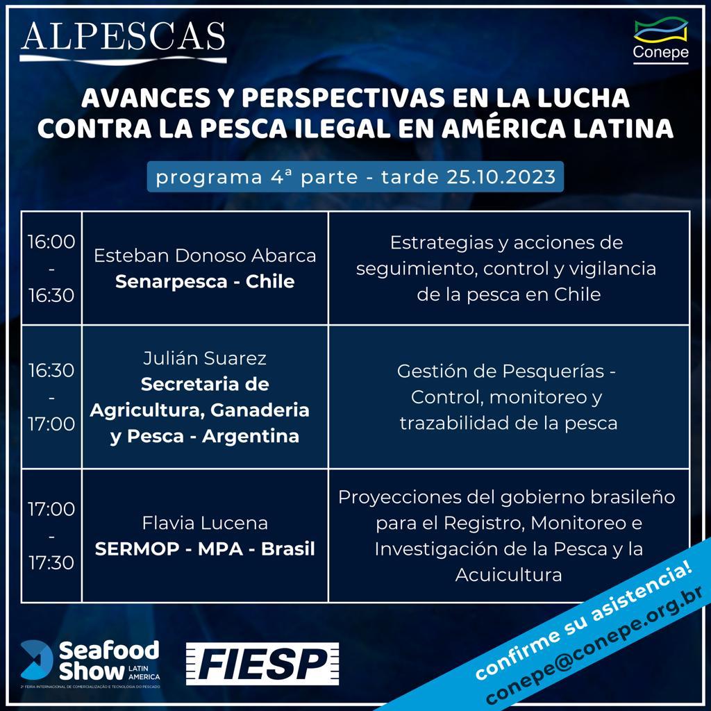 En la ceremonia de apertura de esta segunda edición de la “Seafood Show Latinoamerica”, el presidente suplente del Consejo Federal Pesquero y Director Nacional de Coordinación y Fiscalización Pesquera, sostuvo en su discurso que ‘estamos orgullosos de participar, una vez más, de la Seafood Show Brasil que se desarrollará durante los días martes 24 al jueves 26 de octubre en la ciudad de San Pablo.”