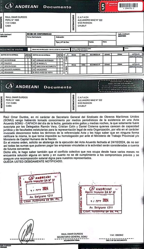 Raúl Omar Durdos, Secretario General del SOMU, ha tomado la delantera enviando una CARTA DOCUMENTO que podría considerarse un guión para un thriller sindical, donde llegó tan tarde que lo terminó exponiendo.