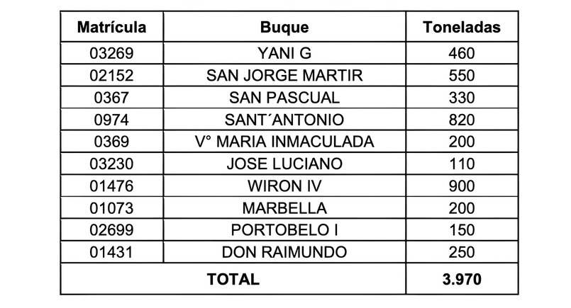Se asignaron 3.970 toneladas adicionales para el periodo 2025, distribuidas entre diez barcos fresqueros: