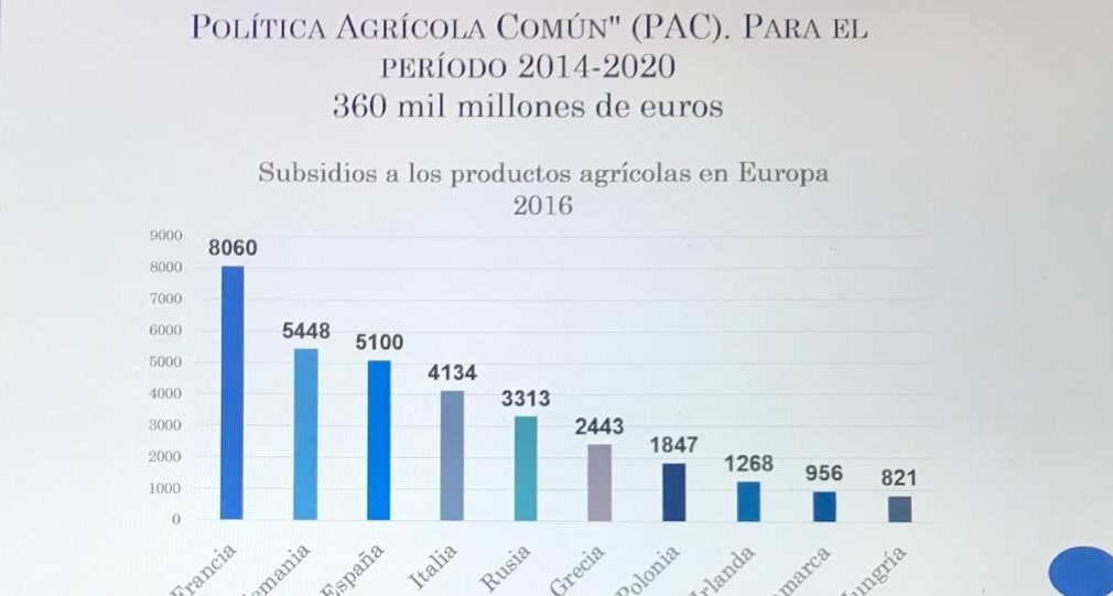 Mostrando con datos consistentes e ilustrativos, la sectorización de las principales exportaciones a la Unión Europea integran materia prima argentina con muy poco valor agregado, mientras, nuestro país importa productos con gran valor agregado en origen y con el agravante de mantener su denominación de origen y una política de subsidios para el sector que en el periodo 2014-2020 fue de 360 mil millones euros.