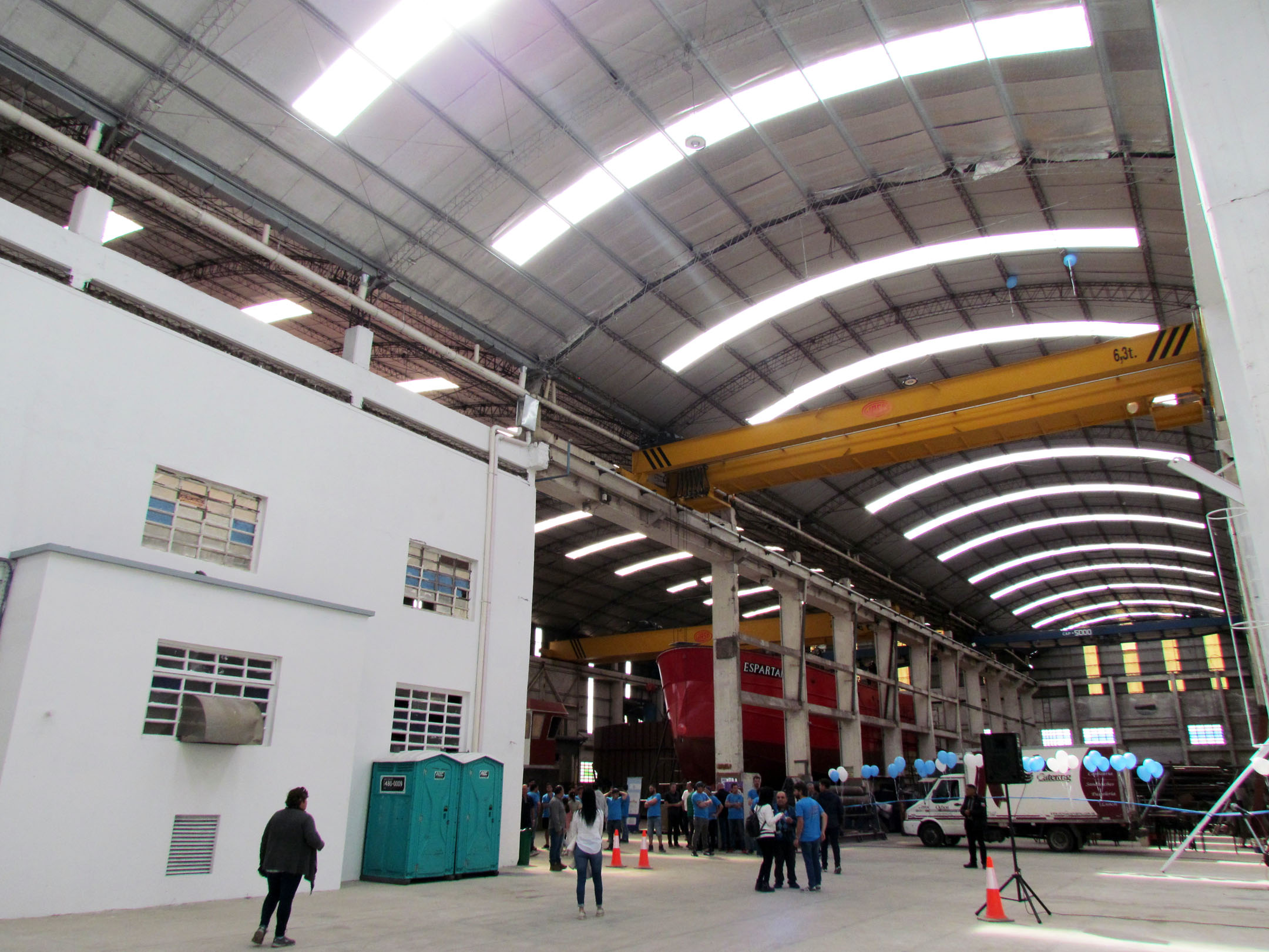 Minutos antes, el astillero también inauguró nuevos espacios de trabajo. Se trata de una nave industrial de 930 metros cuadrados, que integra la primera etapa de un plan de ampliaciones, y la puesta en valor de un galpón de 836 metros cuadrados que pertenecía a los silos.