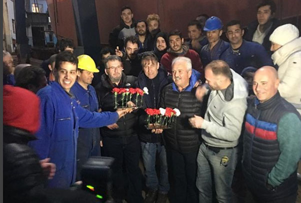 Para el astillero es su barco número 128 y lo toma en un momento de plena actividad, con toda su capacidad instalada operando. Otros tres buques está erigiendo en la nave central. En el grupo se destaca un moderno tangonero congelador de 39 metros.