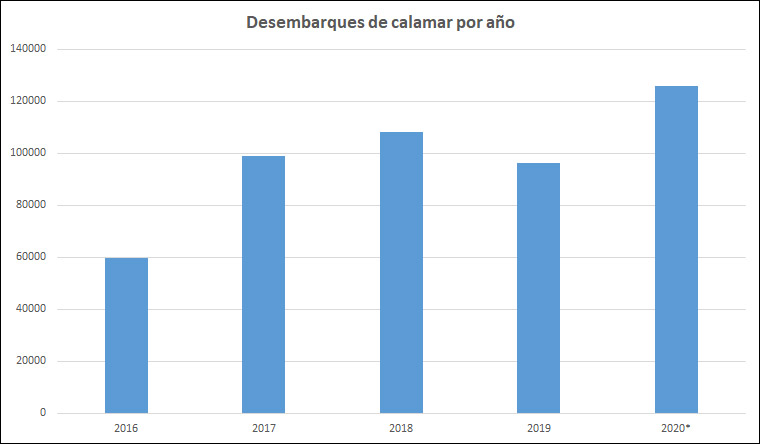 Durante este año, el recurso también se manifestó en las redes de arrastre. Los congeladores arrastreros suman 8.886 toneladas; mientras que los fresqueros de altura, 4.314 toneladas. Incluso, los costeros se anotan en el cuadro con 1.175 toneladas.