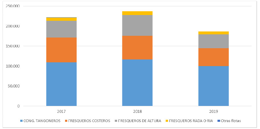 Con respecto a la disminución de las capturas, las cámaras empresarias apuntaron que el factor climático también influyó: durante la temporada 2019 hubo alrededor de 40 días de mal tiempo que forzó diversas pausas en la operatoria.