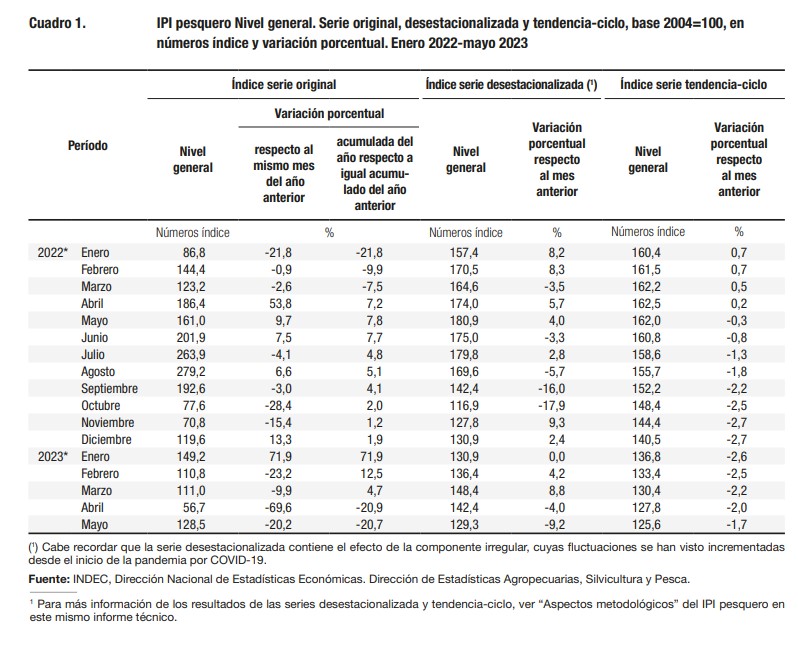 Ver informe completo IPI Pesquero Mayo 2023 Datos Oficiales INDEC.