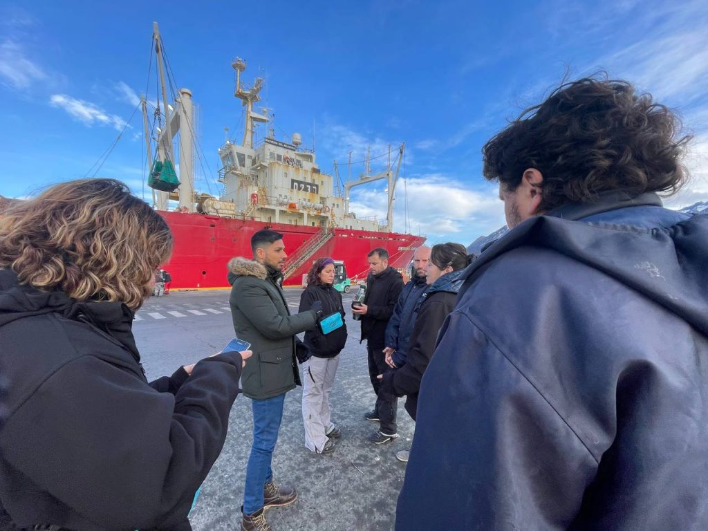 Horas más tarde el periplo continuó por el puerto de Ushuaia para reunirse con el ahora director de Desarrollo Comercial de la empresa Estremar S.A., Tomás Gerpe, para realizar una visita al B/P Centurión del Atlántico, una embarcación de singulares características por el tipo de construcción que posee 118 metros de eslora, lo que lo coloca como el buque más grande de la flota pesquera nacional hasta el momento y que fue botado en 1986.