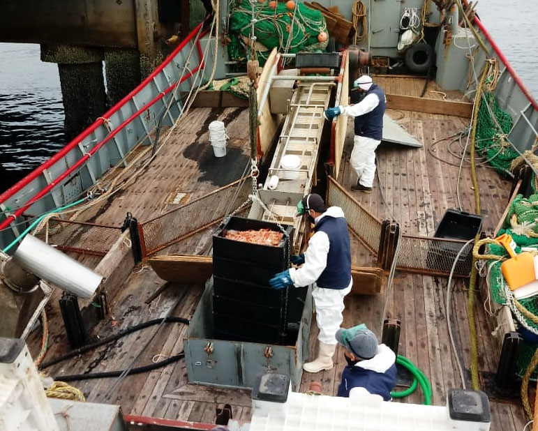 El producto obtenido durante la prospección de langostino en aguas nacionales, dentro del Área de Veda de Juveniles de Merluza, finalmente llega a los puertos de Chubut. En principio y pese a la aparición de casos positivos de Covid-19, algunos muelles están operativos para la flota.