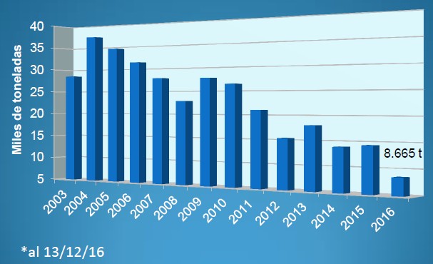 De acuerdo a los datos oficiales presentados, los desembarques de la Engraulis alcanzaron las 8.665 toneladas, con una caída interanual del 38,5 por ciento. El volumen obtenido es uno de los más bajos que registra la pesquería a lo largo de su historia.