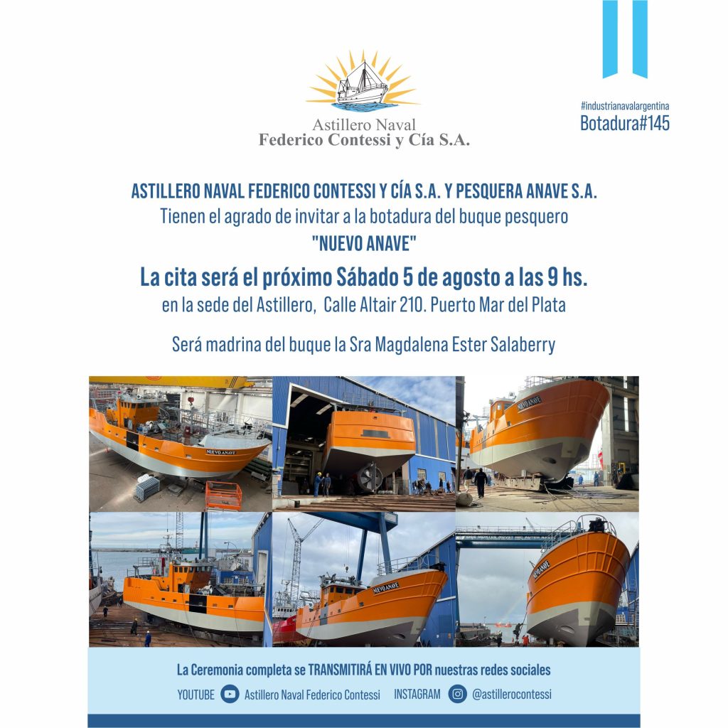 La cita será en el Astillero Naval Federico Contessi y Cía. S.A., donde la empresa Pesquera “Anave” S.A. botará el B/P “Nuevo Anave”.