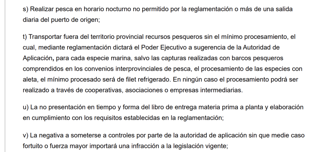 En un marco pleno del desarrollo de las libertades constitucionales, desterrando prácticas de dumping típicas de gestiones desarrolladas en el ambiente pesquero de Chubut bajo la órbita de los dos últimos ejercicios (2015/2023), la Procuración General de la Nación ha dictaminado que el inciso T del artículo 20 de la Ley de Pesca IX-157 de Chubut es inconstitucional, resolviendo en favor de la libertad económica y el fortalecimiento del estado de derecho conforme a la Constitución Nacional. Este inciso, actualmente en vigor, prohíbe el traslado de especies pesqueras —como el langostino— capturadas y desembarcadas en los puertos de Chubut, obligando a las empresas a procesar dichas capturas en plantas locales, lo cual ha sido objeto de controversia.