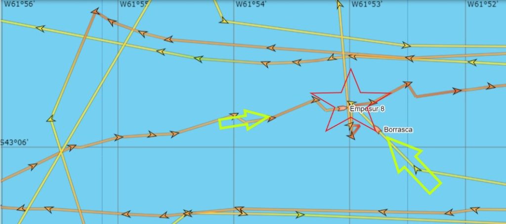 Las primeras noticias al respecto y a través del análisis de los derroteros de ambos buques, muestra que el BP Empesur VIII, en operaciones de pesca y con maniobra restringida por su condición, embiste al BP Borrasca, que sin ninguna eventual maniobra de parar maquinas o esquivar, continuo inmutable su derrotero a 9 nudos colocándose por delante del primero. Hecho que lleva a la colisión con la proa del BP Empesur VIII sobre la banda de babor del BP Borrasca, provocando daos en timonera, chimenea, esparvel y tangón de la misma banda.
