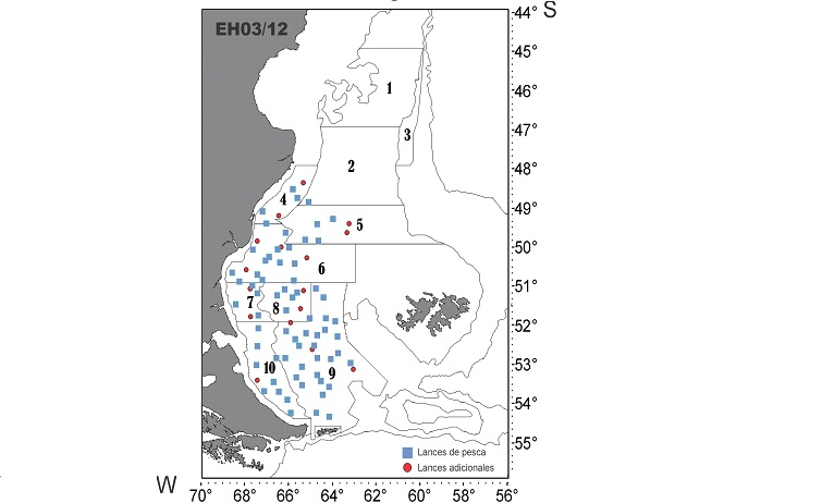 La embarcación tiene previsto operar durante 26 dÃas en la zona que va entre los paralelos 48° y 54° 30´, entre los 50 y 400 metros de profundidad. Aproximadamente se trata del área que va desde Puerto Deseado a Tierra del Fuego.