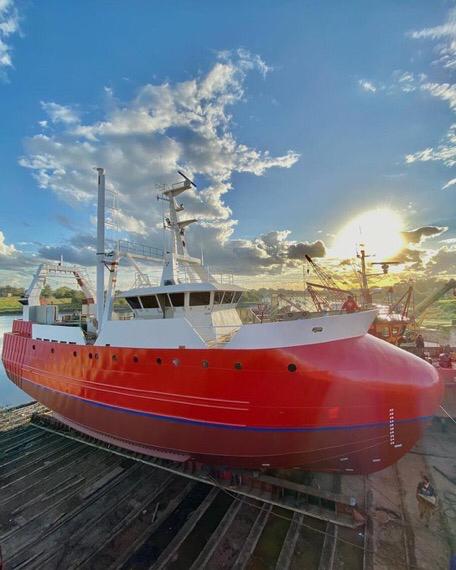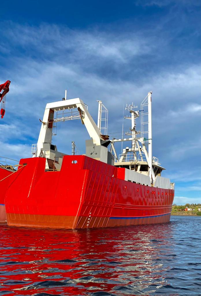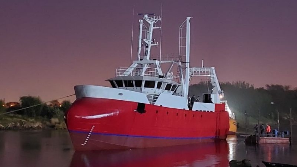 Este jueves pasado, el Astillero Aloncar S.A. botó al BP SKIPPER, el primer barco pesquero construido enteramente con mano de obra del astillero, luce imponente en el Río Quequén.