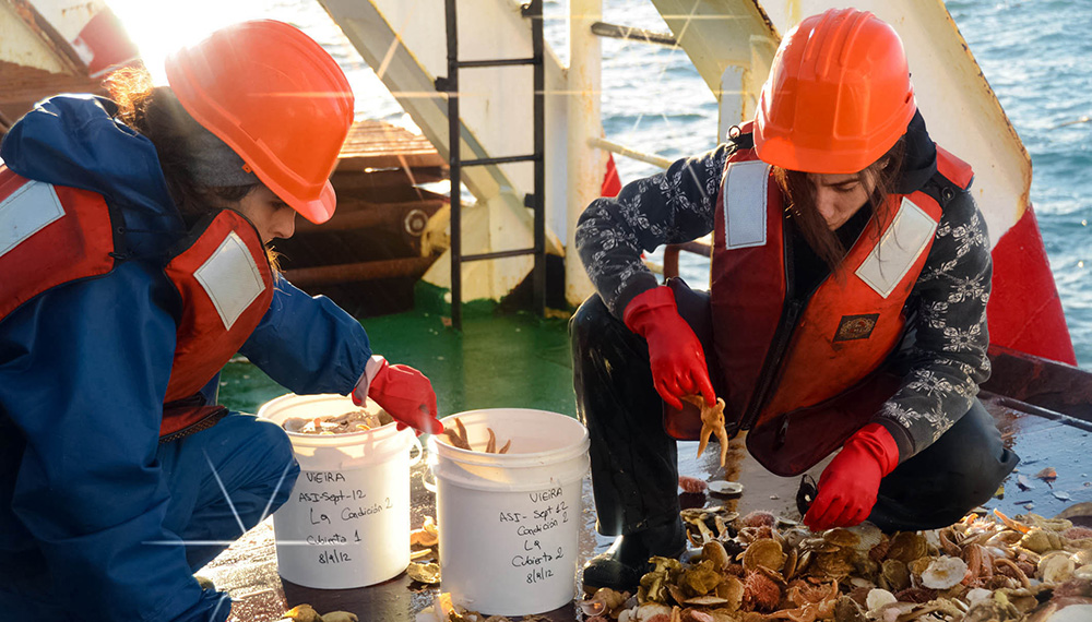 La jefa científica es la Dra. Mariana Escolar y esta campaña tiene objetivo principal el relevamiento de bancos y la evaluación de biomasa de vieira total y de talla comercial en la Unidad de Manejo B.