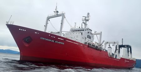 No se trata de un pesquero más, sus 118 metros de eslora ya vislumbran la robustez de todo sus interiores y la capacidad de pesca y procesado a bordo. El Centurión del Atlántico es reconocido como el primer pesquero híbrido de la Argentina, una iniciativa presentada oficialmente en agosto de 2024 luego de una inversión cercana a los 45 millones de dólares. Reconstruido y reparado a fondo en Noruega con tecnología de última generación, su fisonomía lo define con precisión, es una fábrica flotante concebida para capturar y procesar a bordo, produciendo surimi y otros derivados listos para exportación, y con cuota de merluza negra. Con capacidad para más de 90 tripulantes, su operación integra, además, un criterio de máxima eficiencia del recurso, sostenibilidad y respeto por el medio ambiente.