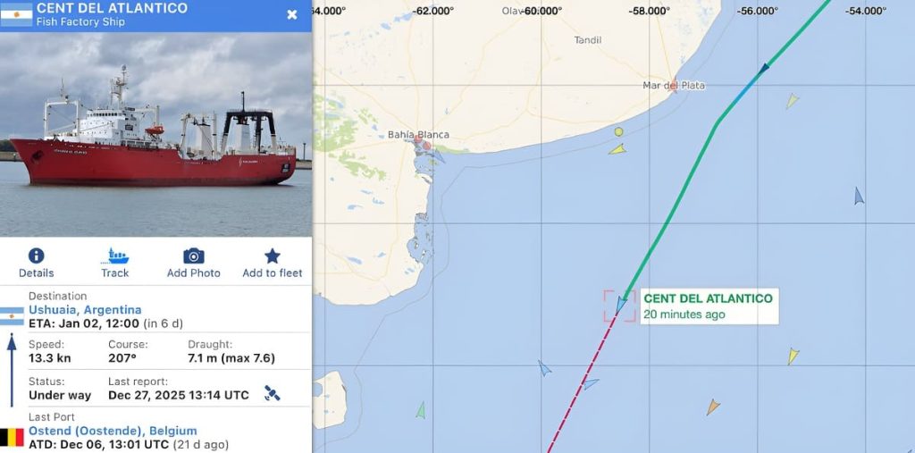 El resultado —celebrable y, sobre todo, promisorio— es el que hoy se constata, el Centurión del Atlántico surca nuevamente aguas nacionales, alcanzando por momentos 15,5 nudos, en retorno destino final Ushuaia, su puerto base. Si la travesía se sostiene según lo previsto, el arribo estaría programado para el 31 de diciembre próximo, aunque su AIS está marcando el dia 2 de enero de 2026, con la expectativa de iniciar operaciones de pesca hacia fines de enero, una vez culminado el alistamiento final.