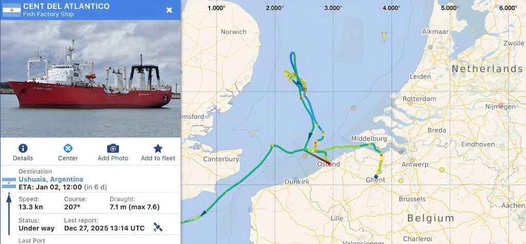 Zarpó de Ostende, Belgica, -lugar que hace casi un siglo muchos capitanes y familias han elegido Mar del Plata como su lugar de permanencia y desarrollo laboral en la pesca-, dejó amarras el 6 de diciembre para iniciar su destino al puerto de Ushuaia, en el confín del mundo y desde donde iniciará operaciones de pesca próximamente.