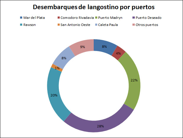 De cualquier manera, los puertos patagónicos son los que absorbieron el grueso de la producción. Puerto Deseado (44.185 t.), Puerto Madryn (34.527 t.) y Rawson (32.625 t.) encabezan el cuadro.