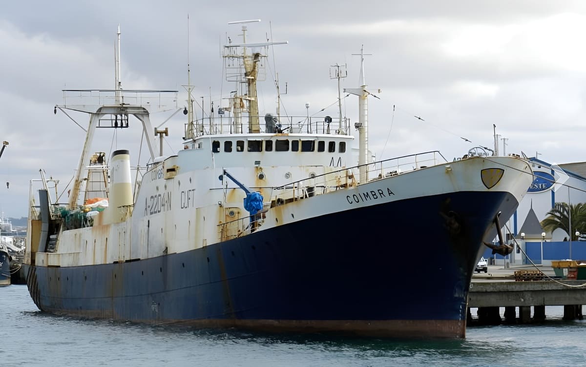 Ese desplazamiento quedó expuesto en las últimas horas con el caso del buque pesquero de arrastre Coimbra, de bandera portuguesa. Se trata de un buque arrastrero congelador IMO 7228091, construido en 1973, de 80,32 metros de eslora y 12,55 metros de manga, identificado bajo el MMSI 263555000 y la señal distintiva CUFT. El mismo tiene capacidad de bodega en 1500 toneladas de pescado congelado.