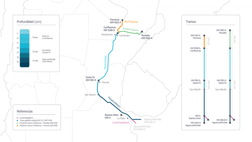 Recordemos, la vía navegable troncal de 1.477 km fundamental para el desarrollo de la economía de nuestro país, vinculando los puertos y las terminales fluviales del Río Paraná y del Río de La Plata con el océano. Constituye la principal vía para el comercio exterior de la Argentina, llevando aproximadamente el 80% de la exportación nacional.