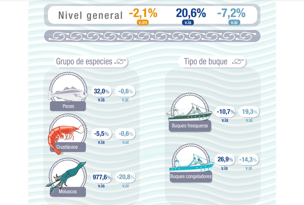 Por 煤ltimo, el grupo 鈥淢oluscos鈥 registr贸 un incremento 977,6% respecto a igual mes del a帽o anterior.