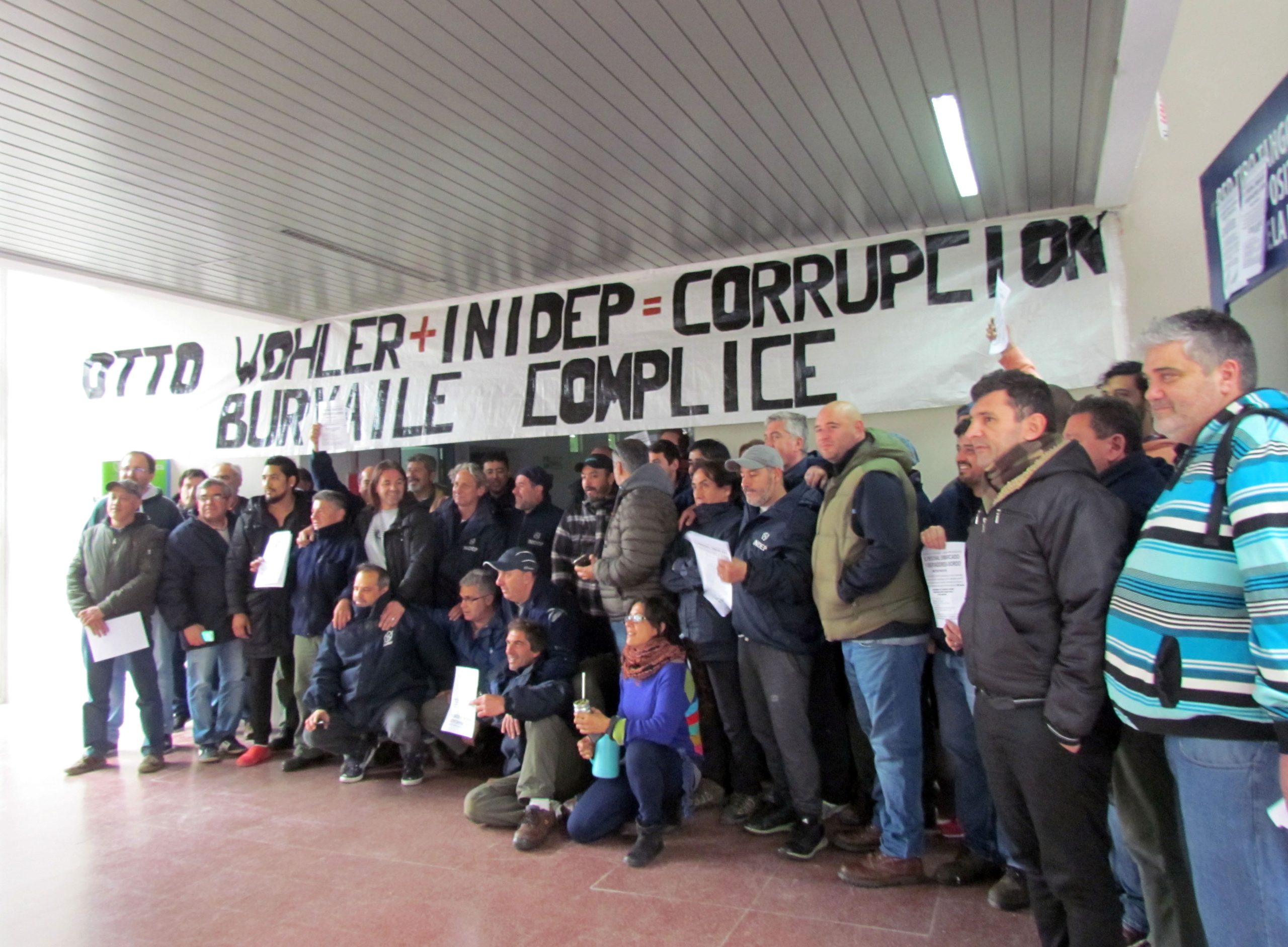 “Wöhler, denunciado ante la Justicia, quiere entregar las campañas de investigación, funcionamiento y mantenimiento de los buques de investigación a Prefectura, afectando la fuente laboral de más de 200 familias”, se leía en uno de los afiches desplegados.