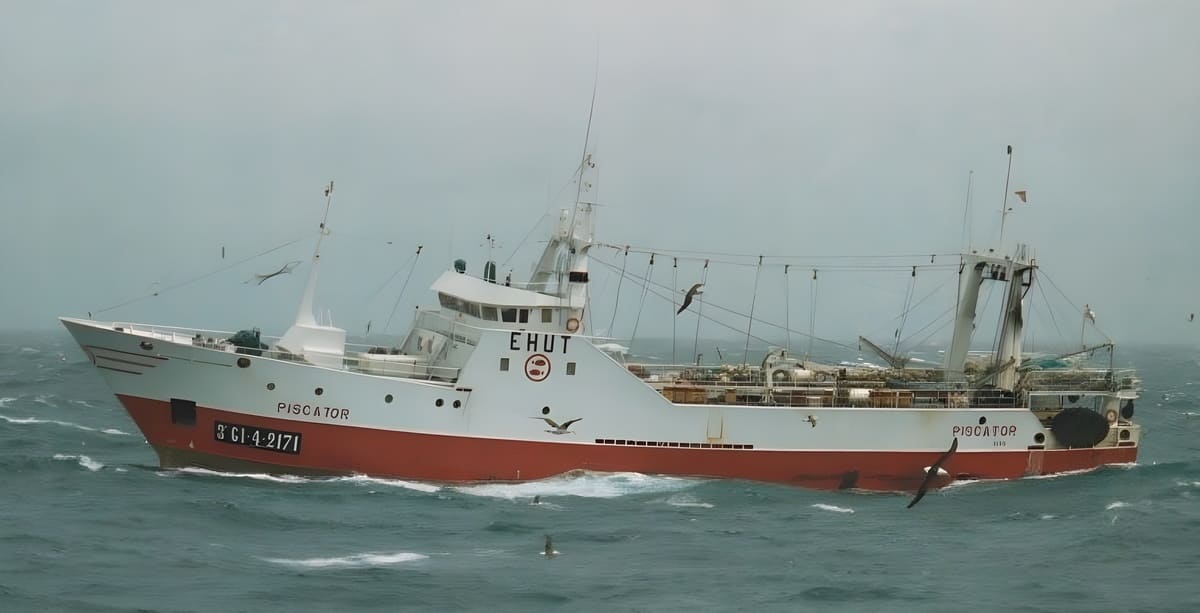 El buque pesquero congelador Piscator tiene bandera española, inscripto en el Registro General de la Flota Pesquera de España, con IMO 8801163 e señal de llamada EHUT. Tiene 72,20 m de eslora, 2500 HP de potencia; casco de acero y puerto base Vigo (Pontevedra, Galicia). Figura en el censo por modalidad como “arrastreros congeladores – aguas internacionales y terceros países”. La empresa armadora es Pesqueras de Bon (Bueu, Galicia, España).