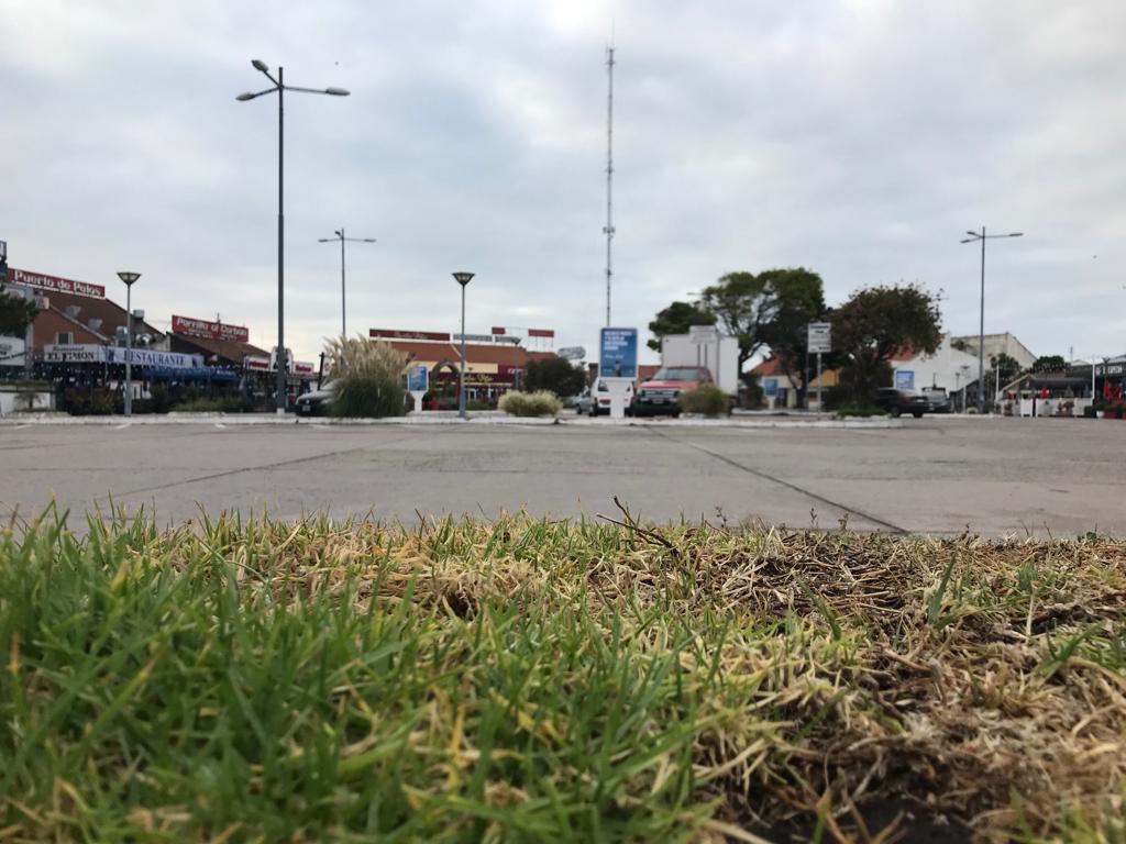Llama a la atención ver un estacionamiento del complejo comercial del puerto, vacío, parecía que el lugar era de algún gorrión en busca de desayuno y el pasto, que hasta parece mas verde… claro.!, ayer llovió y las calles, vacías, lucían limpias como para recibir al cronista hoy.