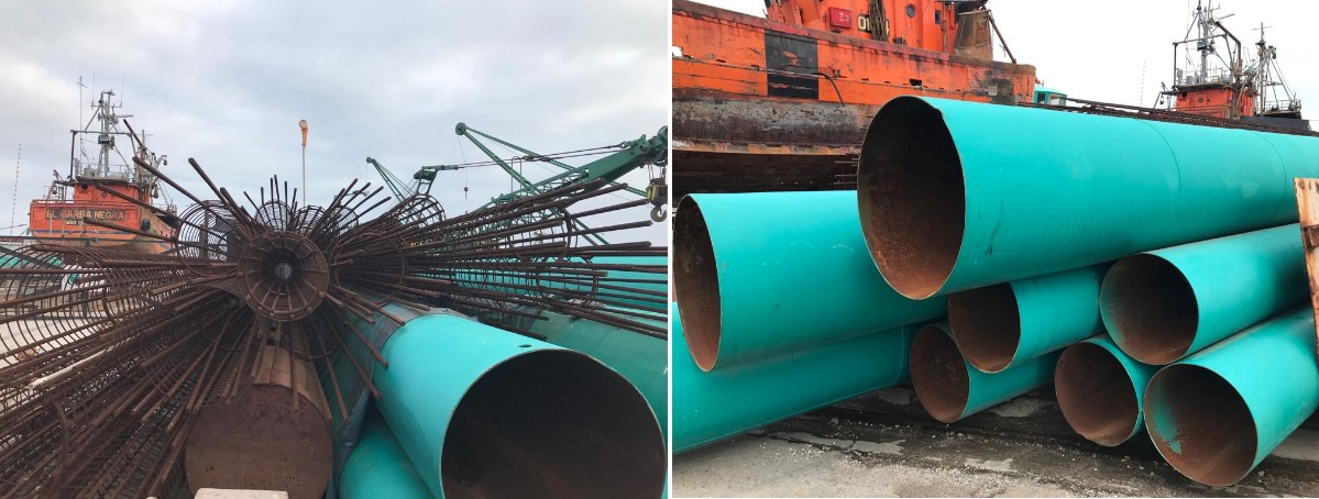 Al lado nomás, observamos los pilotes, preparados como desde hace 7 meses, para alargar el sincro de SPI y poder bajar al BP Luigi, que se demoran los trabajos por absurdas cuestiones burocráticas/administrativas del Organismo Provincial para el Desarrollo Sostenible, (OPDS) y el mismísimo CPRMDP, que ya Felizia adelantó su compromiso para intermediar y poner fin a 7 meses de trámites que no se ajustan para quien apostó por construir en el país, con mano de obra y trabajo marplatense.