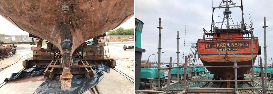 Así, llegó el legendario BP Carlos I, con un problema en línea de eje y su respectiva reparación, que hasta parece verlo “Pipo” Puglisi contento desde el cielo, por tan generoso gesto del astillero. Mas adelante, el BP Barba Negra, de Franco Bocanfusso, con idéntico problema; que bien podría autorizar a colocar un tapón en la salida del eje, para dar espacio a otros barcos como el BP Gurises, que inexorablemente necesita reparar el eje, con un desvío de 3mm producto de algún toque en la piedra del muelle de Camarones, en alguna descarga con bajante. Se espera un gesto de solidaridad de Franco, para poder continuar con los trabajos y las necesidades de otros armadores.