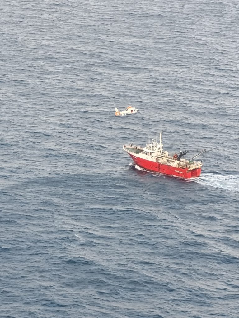 Personal especializado de la Prefectura Naval Argentina aeroevacuó, a casi 240 kilómetros de Trelew, a un tripulante de un buque pesquero que necesitaba atención médica urgente.