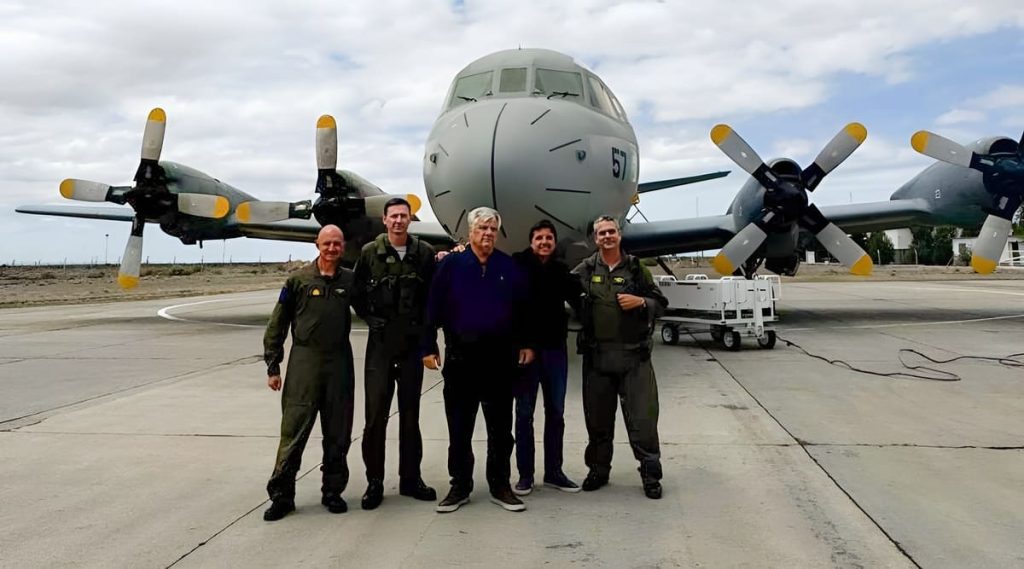 Por último Redini informó que “durante el vuelo, estuvimos acompañados por el Capitán de Fragata Aviador Naval Christian Gensón del COCM y 14 tripulantes, de los cuales destacó al piloto, Capitán de Fragata DarÃo Proni Maiolini, Comandante de la Escuadrilla Aeronaval de Exploración (EA6E), dependiente del Comando de la Aviación Naval de la Armada Argentinaâ€.