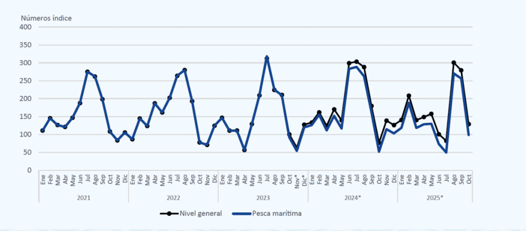 El informe del 脥ndice de Producci贸n Industrial Pesquero de Octubre 2025 dej贸 un dato que llam贸 la atenci贸n, la actividad creci贸 67,9% interanual.