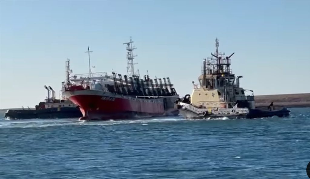En la noche del miércoles, personal de la Prefectura Naval Argentina asistió en una compleja operación de rescate luego de que un barco potero quedara encallado durante un intento de remolque al ingreso de Puerto Deseado, en Santa Cruz.