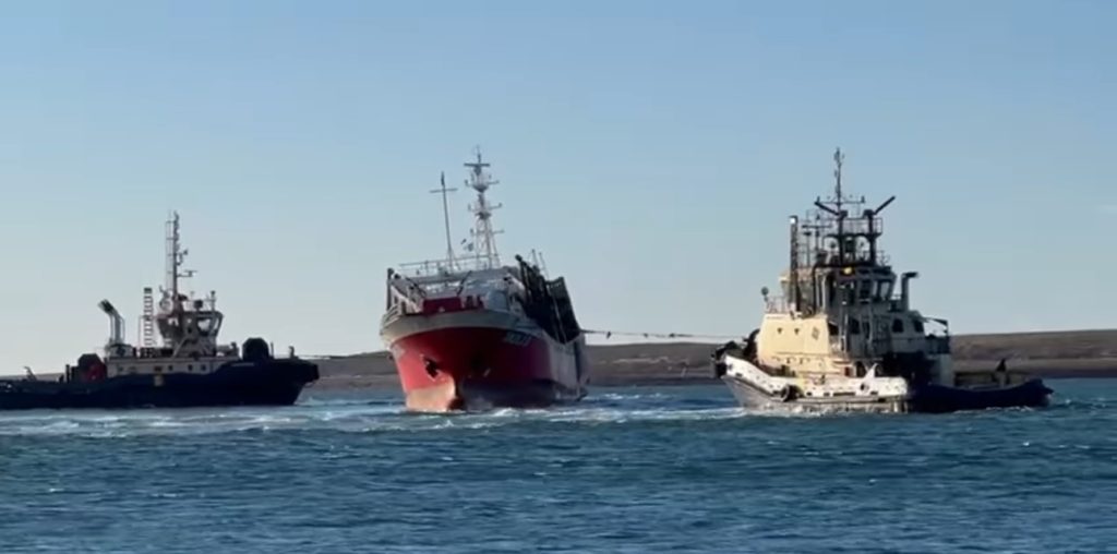 Prefectura Naval Argentina monitoreaba la situación desde la costa, lista para intervenir en caso de ser necesario. Finalmente, tras varios intentos, el Svitzer Grand Bahama, con apoyo del Svitzer Endeavour, logró girar la embarcación y redirigirla hacia el canal de navegación. Posteriormente, la nave fue trasladada hasta el sitio 6 B, donde, con la colaboración del personal portuario, se ubicó en andana junto a otro potero.