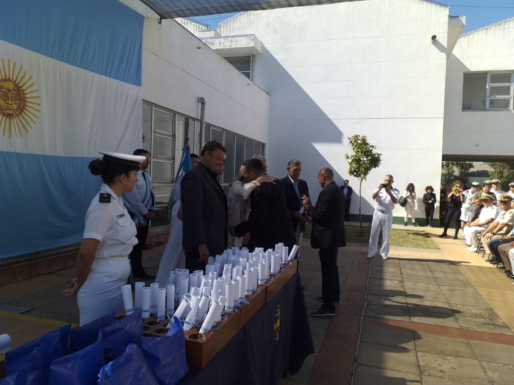 La ceremonia llevada a cabo en el Patio de Redes de la Escuela, contó con una gran cantidad de asistentes donde fueron entregados los correspondientes diplomas a los egresados de los curso de Patrón de Pesca Costera, Piloto de Pesca de Primera, Motorista Naval, Conductor de Máquinas Navales y Conductor de Máquinas Navales de Primera.