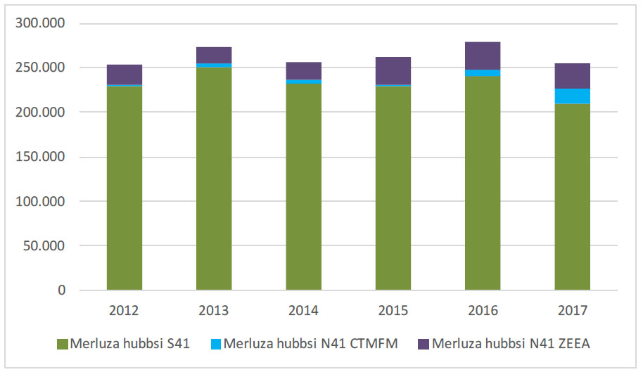 El stock que sigue marcando la suerte de la pesquería es el sur, localizado por debajo del paralelo 41° S. De allí proviene casi el 90 por ciento de la captura declarada de merluza que se encuentra desde 2010 bajo el sistema de cuotas.