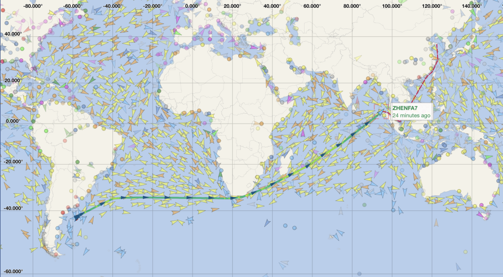 A pesar de este prontuario, el Zhen Fa 7 continuó operando en el Atlántico Sur y en aquella oportunidad, entre el 1 y el 5 de marzo de ese año ingresó 180 millas dentro del Mar Argentino, acercándose a solo 40 millas náuticas de la Isla Leones, frente al Golfo San Jorge con autorización por malas condiciones meteorológicas. La embarcación no estaba sola: fue parte de una flota de al menos 150 pesqueros chinos al resguardo de vientos huracanados.