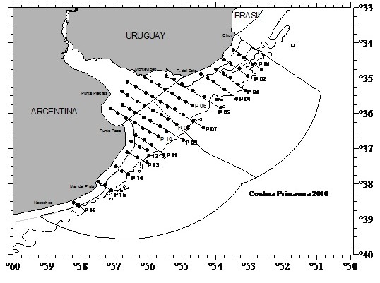 “Se realizarán ochenta y cinco lances de pesca con sus correspondientes estaciones oceanográficas distribuidos en dieciséis piernas perpendiculares a la costa, entre el 34º 00’S y 39º 00’S y hasta la isobata de los cincuenta metros, en las áreas jurisdiccionales costeras de cada país y en la Zona Común de Pesca”, señaló el instituto en un comunicado.