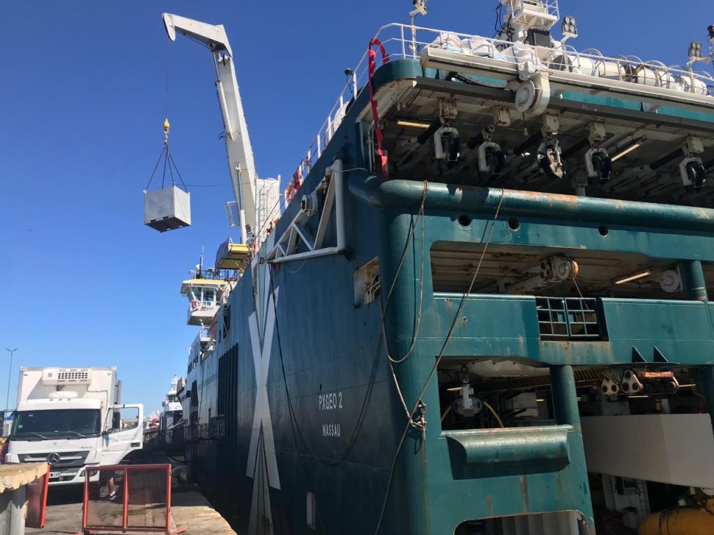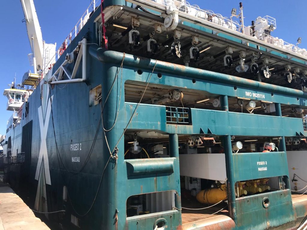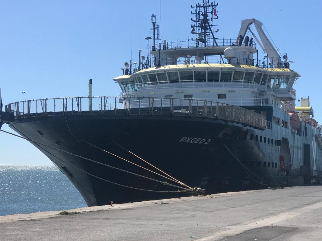 El enorme barco sísmico PXGeo 2 de 100m de eslora, que navega bajo bandera de Bahamas, estuvo amarrado en la sección octava del puerto marplatense, -por estas horas en maniobras de alistamiento-, donde habitualmente atraca el buque portacontenedores, único espacio del muelle habilitado a buques de bandera extranjera en los muelles del puerto local y será el encargado relevar las mencionadas áreas distantes a 95 millas náuticas al Este de Mar del Plata, en la barranca, en profundidades que van desde los 100m a los 1300m.