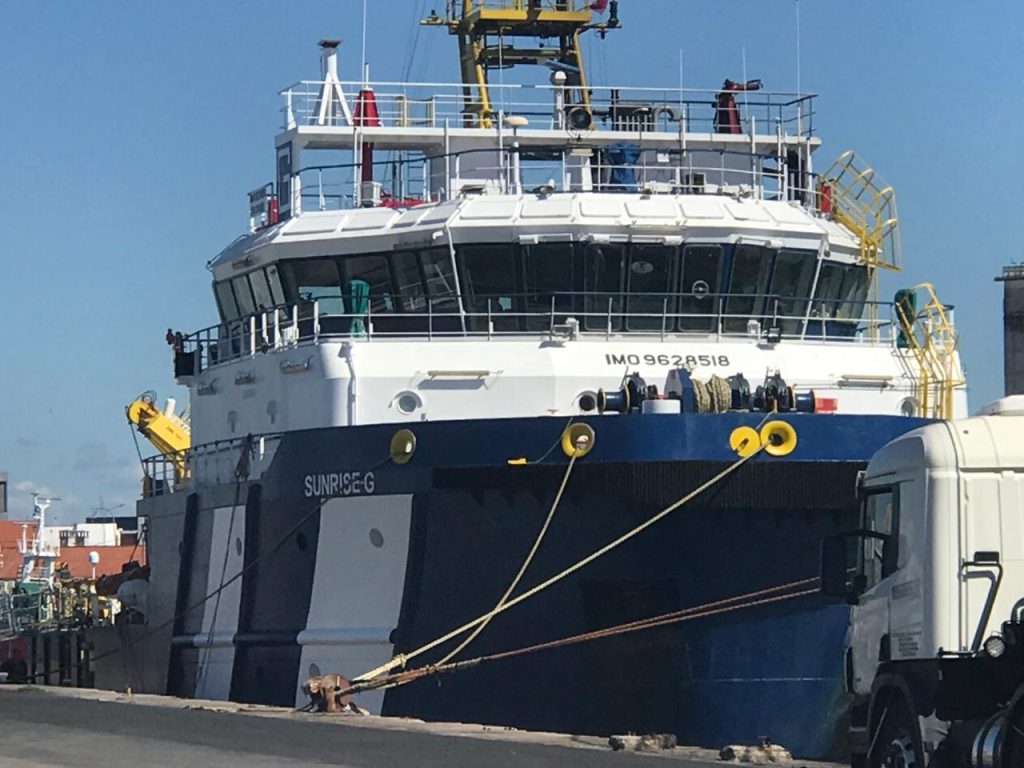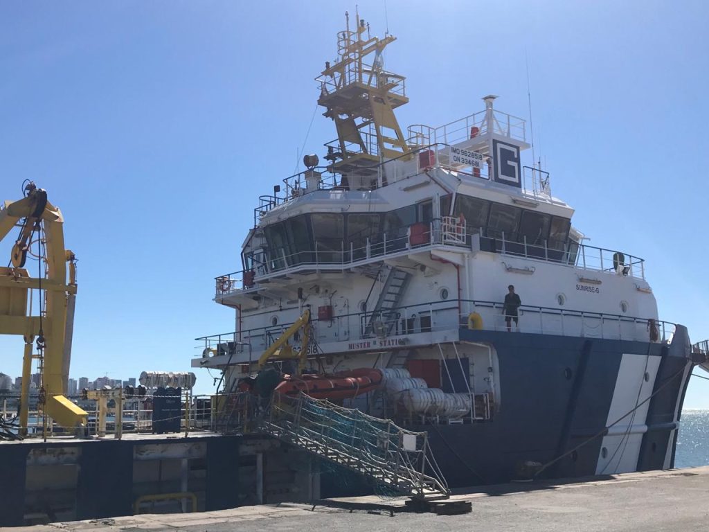 El Sunrise G, un supply de apoyo a quien llegó para comenzar operaciones sísmicas en la zona CAN-102, reemplazando al BGP Prospector, que por estos días se encuentra haciendo relevamientos en el área AUS-105 en aguas linderas a Tierra del Fuego.