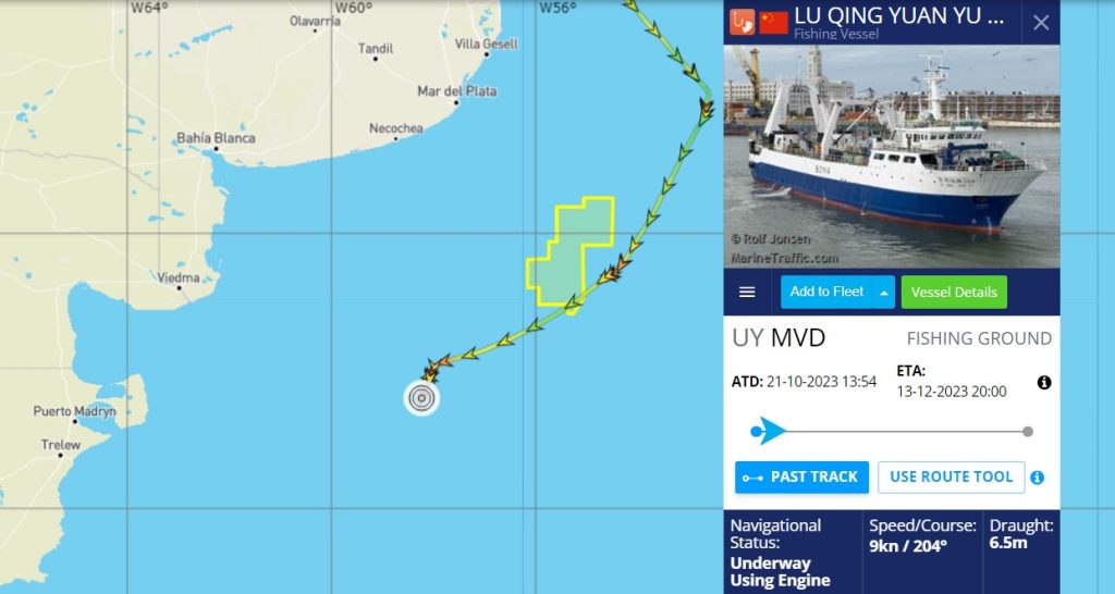 En la zona no hay actividad pesquera de la flota argentina, mientras que en la milla 201, al sudeste del lugar, se situó aminorando máquina en su pasaje cercano, como espiando lo que se hacía dentro del área de prospección sísmica, el buque arrastrero con bandera china Lu Qing Yuan Yu 209, (IMO: 9738399), construido en el año 2014 de 65 m. de eslora y 14 m. de manga, cuya pesca objetivo es merluza, abadejo y otras especies demersales transzonales que rebalsan la plataforma argentina por fuera de la milla 200 y al borde de la misma.