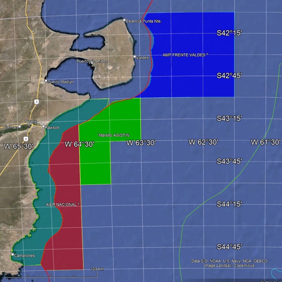- La incumbencia y fundamentación ambiental del AMP Frente Valdés, ampliamente impulsada por Chubut (ver reunión 21 octubre 2022 entre Medio Ambiente y autoridades provinciales de Pesca en Puerto Madryn), que se encuentra en aguas jurisdiccionales de la Nación por fuera de la milla 12, por cuánto Chubut nada tiene que hacer allí, pero le es útil a los efectos de distanciar la flota nacional de puertos chubutenses y distanciando el caladero para convertirse en cruceros de navegación más que pesqueros.