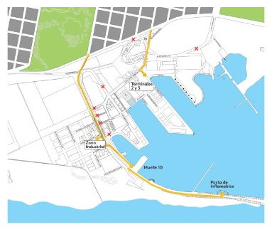 · Terminal 2 y 3: El acceso y salida se realizará a través de la Av. de los Pescadores, desde Av. De los Trabajadores.