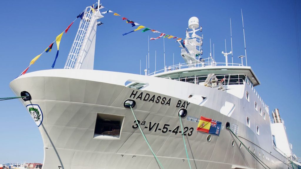 Con 75 metros de eslora y 15 metros de manga, el Hadassa Bay destaca por su diseño optimizado y su enfoque en la sostenibilidad. La embarcación, con 2.493 toneladas brutas, está equipada con la última tecnología en equipamiento pesquero, navegación y seguridad. Estas innovaciones garantizan no solo la eficacia y la productividad en la captura de calamar en el caladero de Malvinas, sino también el confort y la seguridad para la tripulación a bordo.