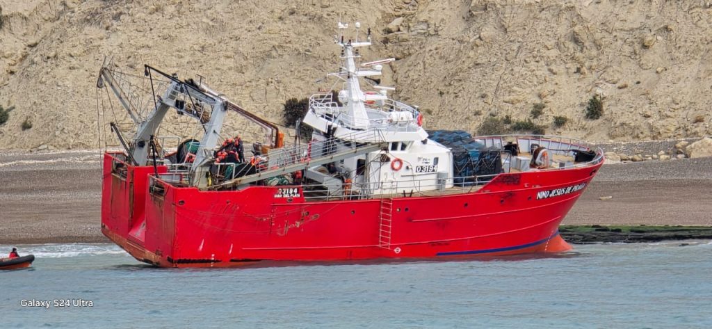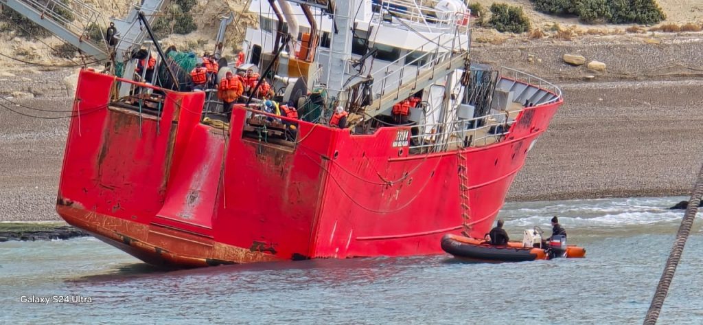 El buque que ingresaba después de 72hs efectivas de pesca aun sin completar el total de la carga, varó minutos después del alba, en un fondo arcilloso. El evento, cargado de nerviosismo, por tratarse además de un buque nuevo botado el 29 de abril del 2021, que al principio disparó todo tipo de rumores, pudo zafar cerca de las 16:30, una hora antes que se produzca la máxima pleamar, prevista para las 17:42hs.