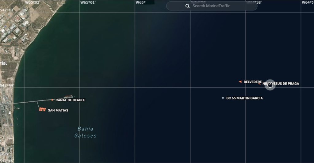 A remolque del BP Belvedere y custodiado en toda la maniobra por el GC 65 Martín García de la Prefectura Naval Argentina, llegó a Puerto Madryn el BP Niño Jesús de Praga, quien estuvo varado en Punta Ninfas, -el extremo SW de la boca del Golfo Nuevo- en Chubut, algo más de 9 horas.